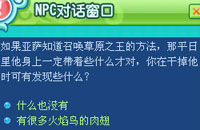 到太古草原(302,372)附近,找到亚萨并击败亚萨,取得10个火焰鸟肉翅。 |